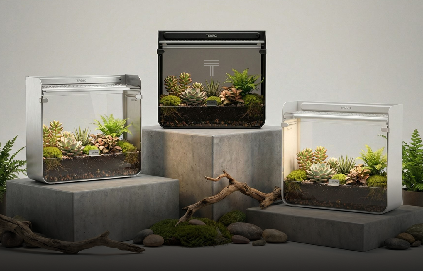 Terrix brings real plant life to your desk, designed to live alongside modern tech or stand beautifully on its own. A calm, living centerpiece for work, play, and everything in between.
